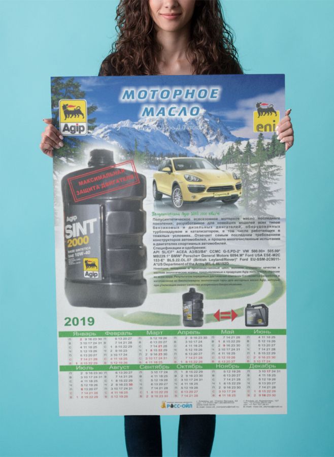 Плакатный календарь размером на выбор: А1, А2, А3, А4.