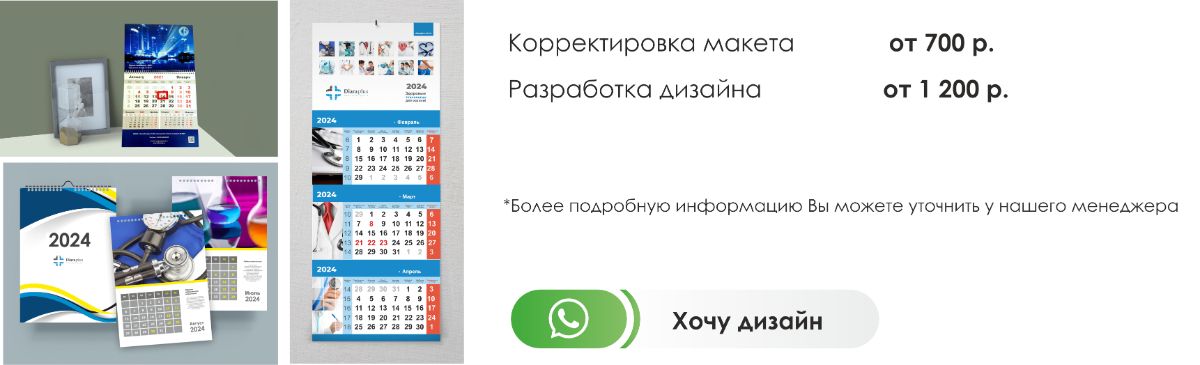 Мы предлагаем гибкую систему скидок для постоянных клиентов и при заказе больших тиражей. Наши менеджеры помогут вам выбрать оптимальный вариант календаря и рассчитать стоимость печати.