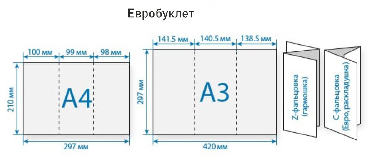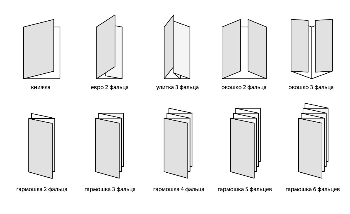 Буклеты могут быть сфальцованы (согнуты) множеством различных способов. Выберите подходящий именно Вам вариант, а мы его реализуем!