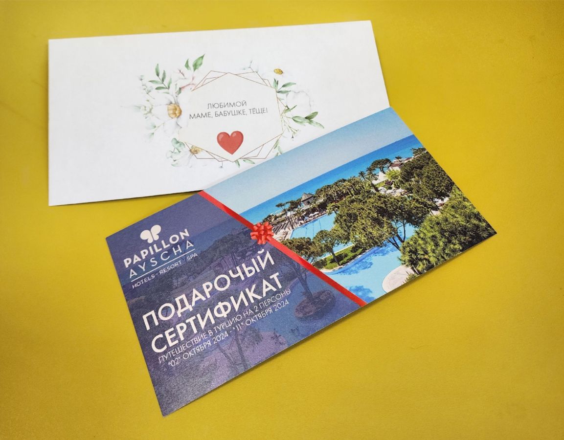 Печать открыток на дизайнерском бумаге — такая открытка точно не потеряется и займет почетное место на полке.