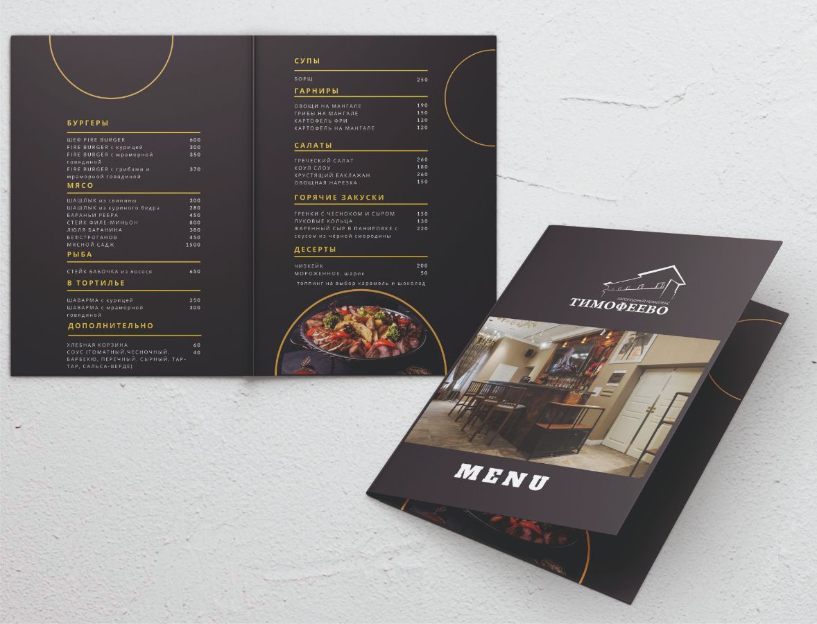Меню – незаменимый атрибут для успешной работы заведения. Лицо, которое должно создать приятное первое впечатление. Выберите оформление в фирменном стиле, вкусные картинки и средний чек увеличиться в полтора раза!